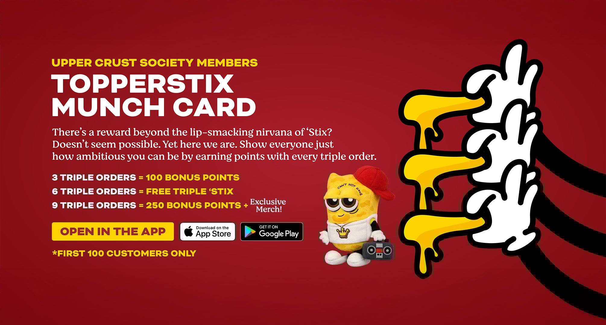 Our delicious Original Topperstix topped with roasted garlic, asiago and cheddar cheese. Made with 100% real Wisconsin mozzarella cheese.