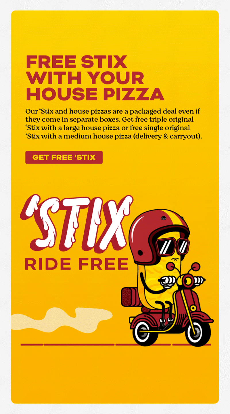 Our craveable dessert stix are made with cinnamon sugar and drizzled with our delicious cream cheese icing.